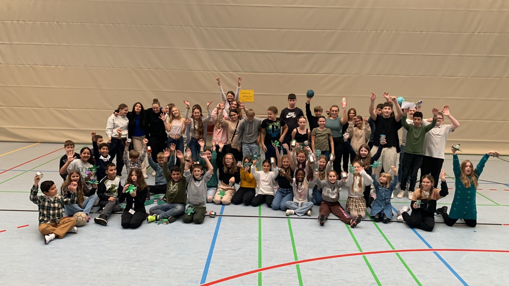 Dieser fand am 20.10.23 statt und gliederte sich in drei aufeinanderfolgende Phasen. Zuerst erfolgte eine rund fünfzehnminütige Einführung in das Thema durch eine informative Präsentation zu den Themen Kreislaufwirtschaft und Umwelt- bzw. Klimaschutz. Anschließend folgte die Phase der Workshops, die in der Mühlbachhalle stattfanden und den praktischen Teil des Projekts ausmachten. An den von der 8b entwickelten Stationen, die sämtlich aus wiederverwertetem Material angefertigt wurden bzw. dieses für Re- und Upcycling nutzten, konnten die Teilnehmerinnen und Teilnehmer der Klasse 5c in Kleingruppen kreativ mit vermeintlich nutzlosem Altmüll arbeiten und aus ihm Neues schaffen. Es bestand zudem die Möglichkeit, sich sportlich zu betätigen und das erworbene Wissen auf die Probe zu stellen. Der Tag fand seinen Abschluss in einer umfassenden Gesamtreflexion, bei der Interviews geführt wurden, um das Projekt als Ganzes zu würdigen und zu analysieren. Die Videodokumentation des ganzen Tages wurde dann als Wettbewerbsbeitrag beim Landkreis eingereicht. Das Video ist über diesen Link abrufbar: https://nc.schulit-nk.de/s/B949Awqj6bsCn9c.