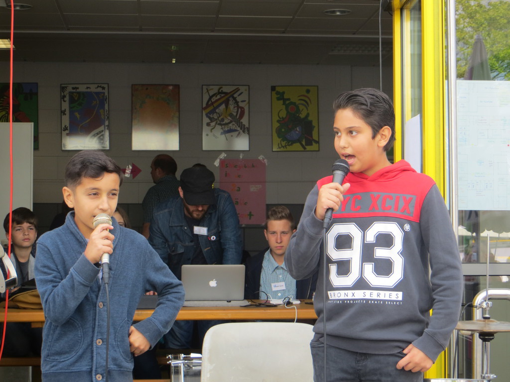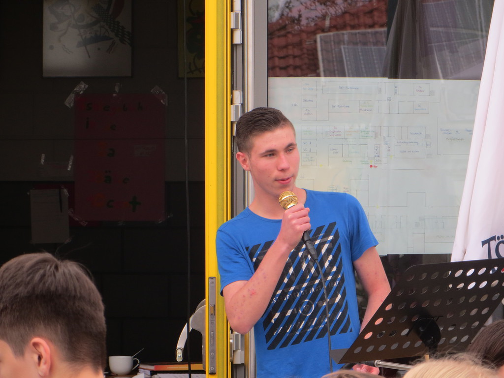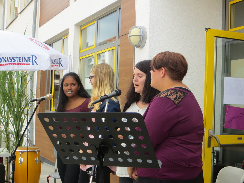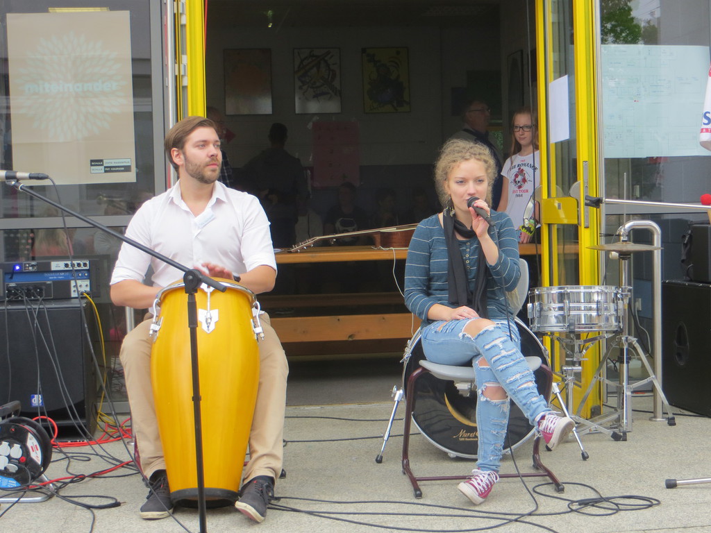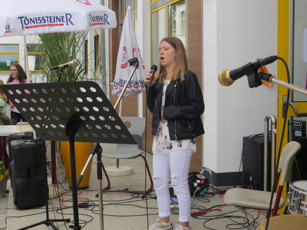 Abgerundet wurde das gelungene Fest von einem fast schon professionellen und sehr abwechslungsreichen Bühnenprogramm auf dem Schulhof, bei dem nicht nur Klassen, sondern auch Solokünstler/innen brillante Auftritte zeigten. Kira Bronder sang neben Klassikern aus Rock und Pop, eine von ihr selbstgeschriebene Ballade, Tamara Einicke zeigte ihre gesangliche Vielfalt mit einem französischen Stück. Dazu kamen noch Musicalauszüge, ein arabisches Lied und das traditionelle Mühlbachschulen-Shuffle durfte natürlich auch nicht fehlen.