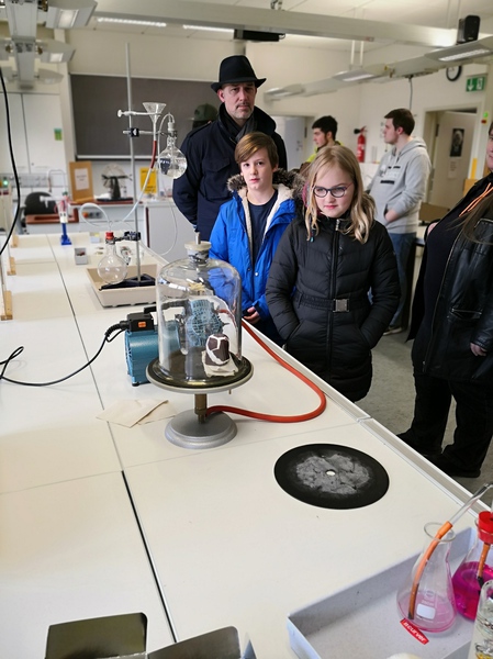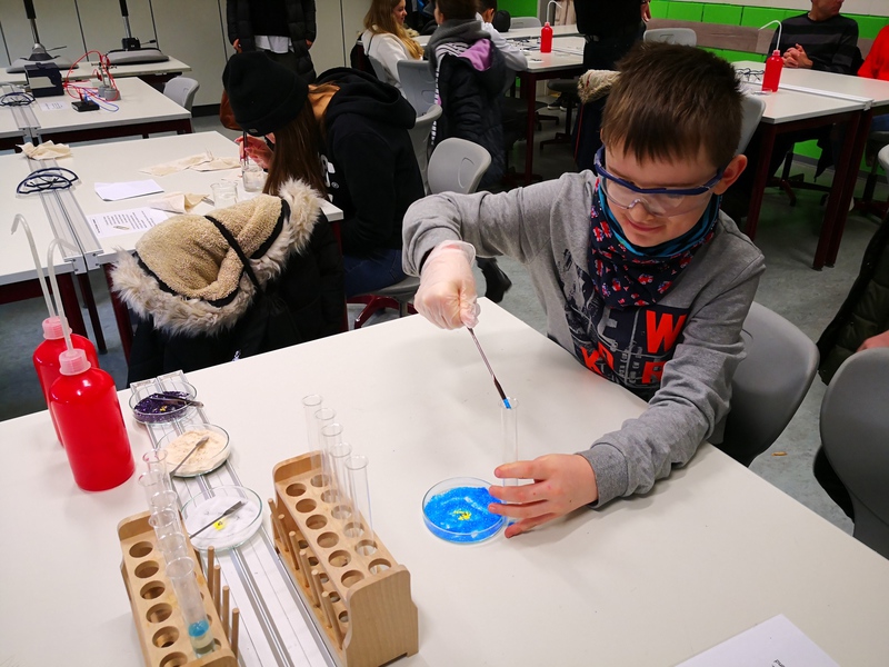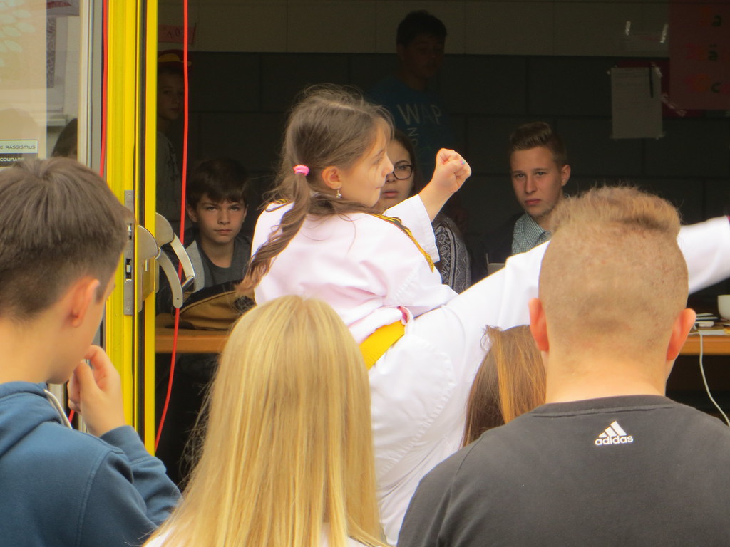 Natürlich gab es auch zahlreiche Mitmachangebote für die Viertklässler. Sie durften angesagte Hits Karaoke singen, einen Basketballführerschein machen, kulinarisch aktiv in der Schulküche Crêpes backen, Konservendosen zu Übertöpfen upcyclen, erste Selbstverteidigungskniffe kennenlernen, Karnevalsmasken basteln, handwerklich begabt mit der Laubsäge arbeiten, physikalische Phänomene bestaunen oder erste chemische Experimente selbst durchführen.