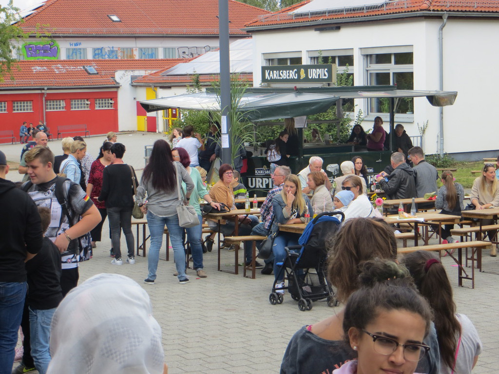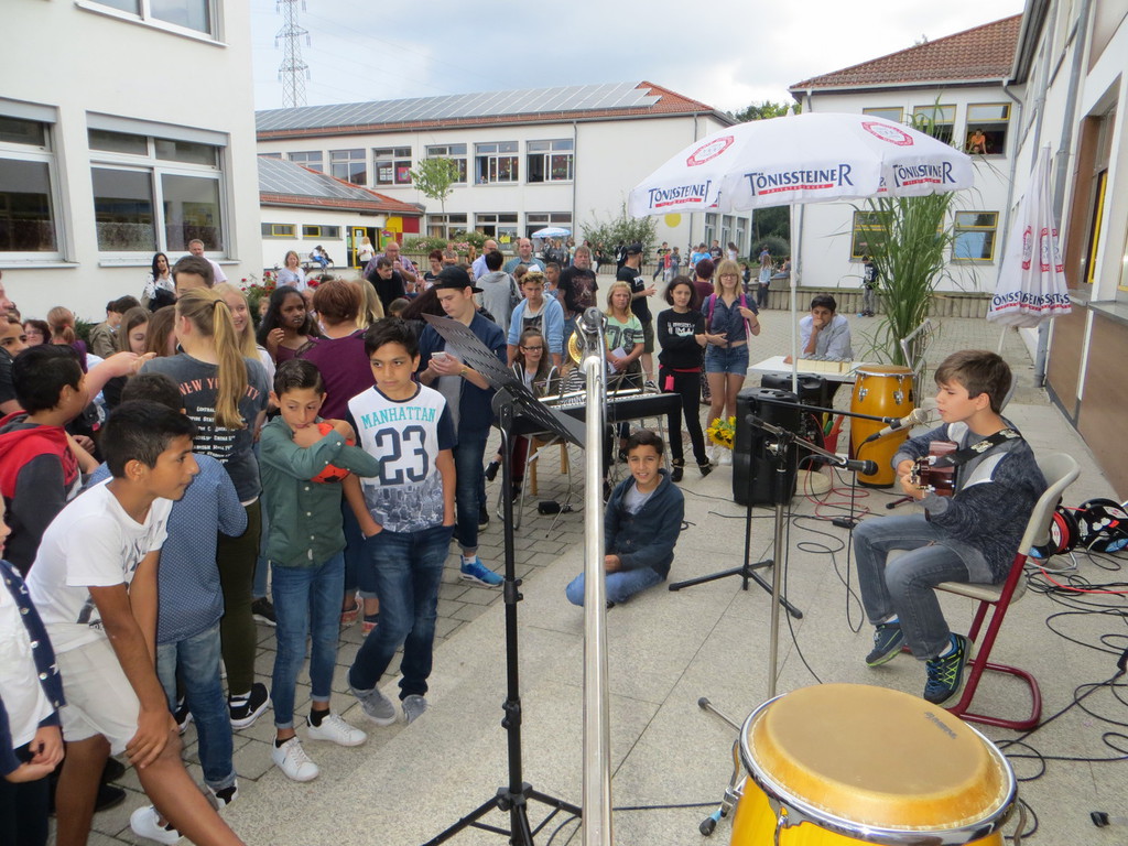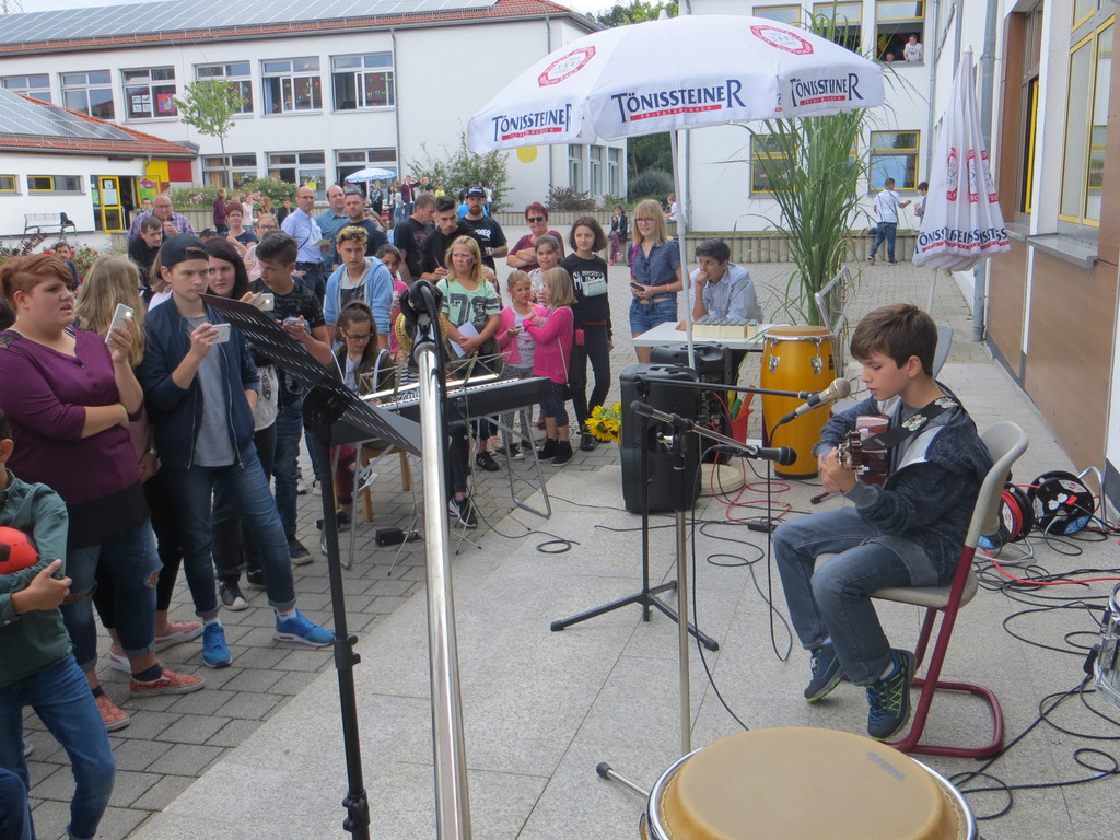 Am Samstag, dem 02.09.2017 feierte die Mühlbachschule Schulfest. Von 10-16 Uhr zeigten alle Klassen was sie in den Tagen zuvor vorbereitet hatten. Es gab ein vielfältiges Angebot zum Bestaunen, Mitmachen und Genießen. So konnte man in den Klassenräumen der Schule nicht nur Grußkarten, Windspiele und Tonfiguren basteln, sondern auch an Wettbewerben teilnehmen. Die 6a lud zum Wettkampf „Schlag deine Eltern“ ein, im Jahrgang 7 konnte man „Spiele aus aller Welt“ ausprobieren. Sportlich ging es bei den 5ern zu, die in der Schulturnhalle einen Parcours aufgebaut hatten und im Jahrgang 8 konnte man Tischtennis spielen und kegeln. Eine Fotobox in der Klasse 9a animierte zu kreativen Schnappschüssen. Kulinarische Highlights fand man drinnen und draußen, es gab unter anderem Sandwiches, Hot Dogs, Obstbecher, Waffeln und Crêpes. Die Elternvertretung und der Förderverein der Schule organisierten traditionell das Kuchen- und Salatbuffet, den Grill und den Getränkestand.