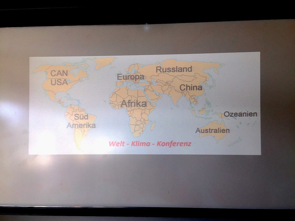 •Klimakonferenz, bei der die Schülerinnen und Schüler in kontinentbezogenen Kleingruppen spezifische Strategien zur Begrenzung des Klimawandels entwickelten, präsentierten und schließlich in einer offenen Runde der Konfliktparteien versuchten, eine gemeinsame Zukunftsstrategie zu finden