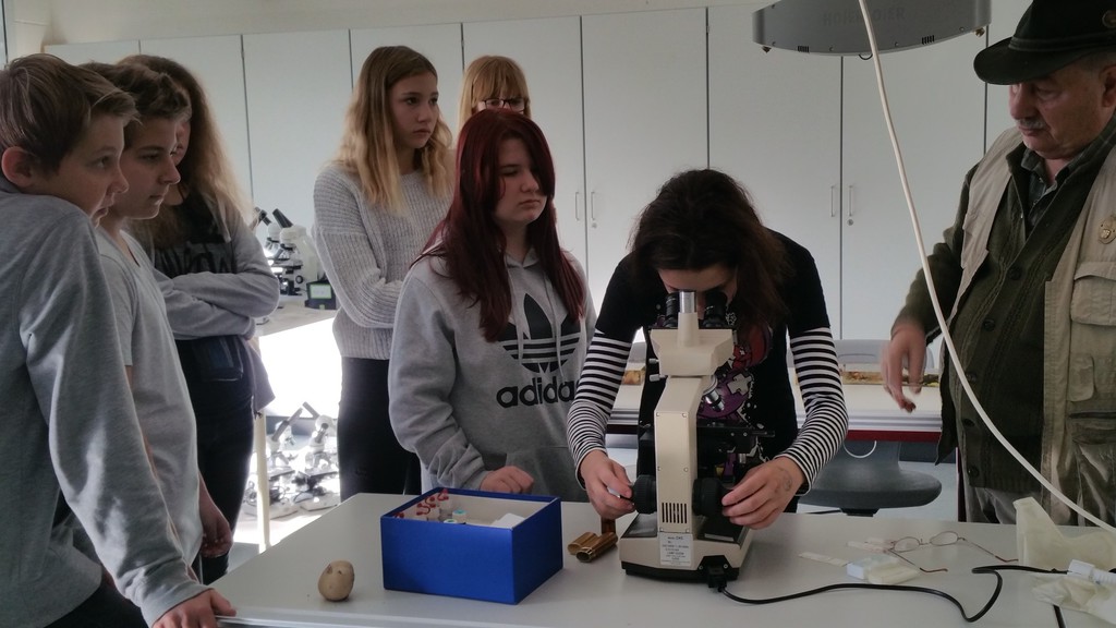 Mit Hilfe von Lupe und Mikroskop konnten sie den Feinbau der Pilze untersuchen. Alle waren hoch motiviert am Werk. Außer dem „Frischmaterial“ konnten auch jede Menge