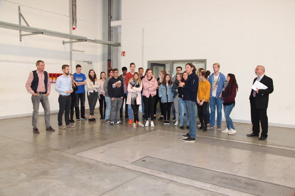 Der nachfolgende Teil des Projekttages fand auf dem Gelände der VENSYS Energy AG in Neunkirchen statt, wo die Schülerinnen und Schüler durch die Produktionshalle geführt und über die Entwicklung und Fertigung der getriebelosen Windenergieanlagen „Made in Saarland“ informiert wurden. Dort gab es u.a. die Möglichkeit, sich eine Vorstellung über die Stärke der verbauten Magnete im Stromgenerator zu verschaffen und einen Eindruck von der tatsächlichen Größe einer Maschinengondel zu bekommen.