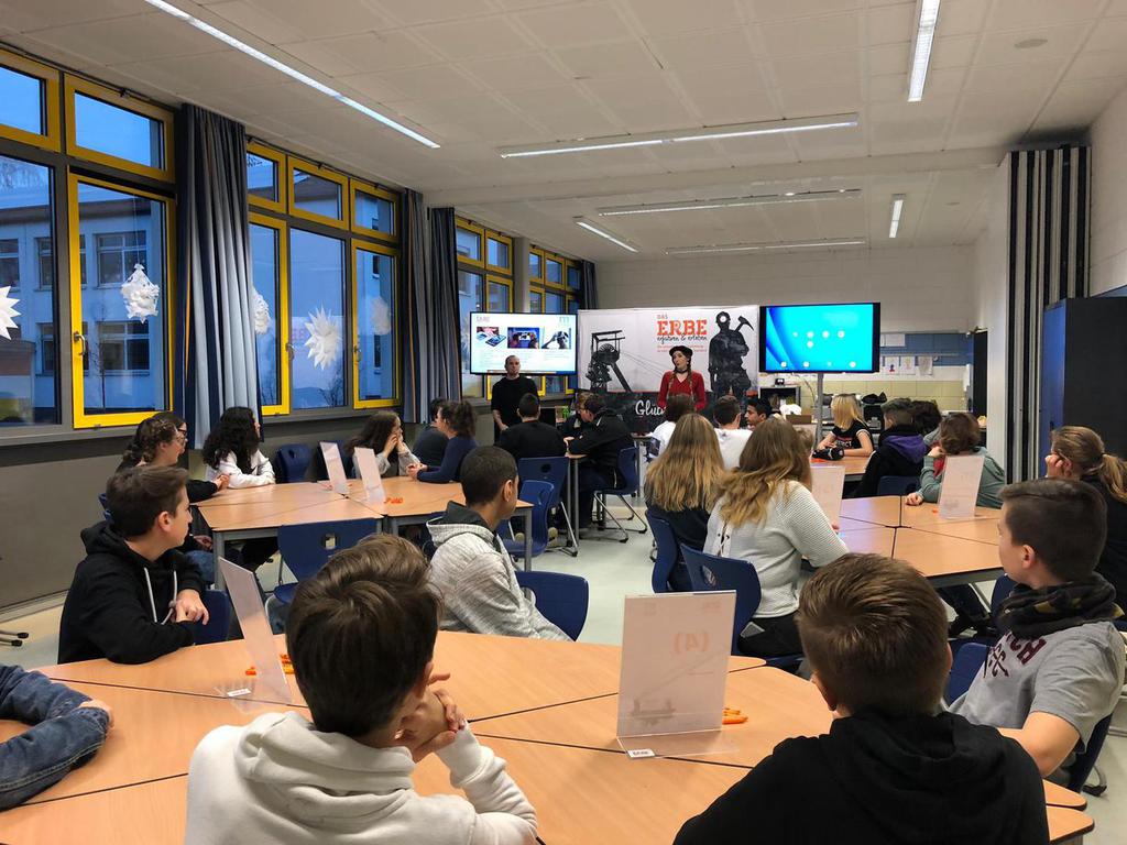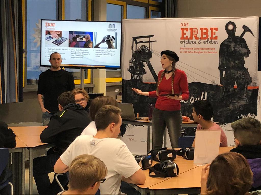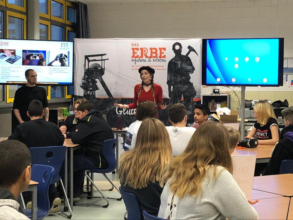 Der Bergbau ist eine der ältesten Methoden der Rohstoffgewinnung. Auch bei uns, hier im Saarland, war der Bergbau prägend. Durch bergbaubedingte Gebirgsschläge entstanden jedoch massive Schäden an Häusern. Am 23. Februar 2008 kam es zum stärksten bergbaubedingten Gebirgsschlag im Saarland. Am 30. Juni 2012 wurde u.a. deshalb der Steinkohlebergbau im Saarland endgültig stillgelegt. Um dennoch Menschen an diesen wichtigen geschichtlichen Abschnitt zu erinnern, gibt es die Ausstellung „Das Erbe“ bei uns in Landsweiler-Reden. Die Schülerinnen und Schüler des 8. Schuljahres hatten die Ehre einen Teil dieser Geschichte zu erleben, denn „Das Erbe“ war bei uns zu Besuch. Bevor wir uns in das geschichtliche Abenteuer stürzen konnten, wurde uns über „Das Erbe“ erzählt, natürlich fanden es nicht alle so spannend zuzuhören, da der Drang nach Eigenarbeit viel größer war. Nachdem wir uns die lehrreichen Informationen angehört haben, durften wir ran an die Arbeit. Insgesamt gab es acht Stationen , u.a. gab es einen 360°-virtuellen Raum und acht virtuelle Sammlungen für die verschiedenen Gruppen. In Station 6 wurde uns durch ein Video die frühere Zeit des Bergbaus gezeigt. Interessant war, wie stark sich der Bergbau verändert hat, so verbesserte sich durch die moderne Entwicklung einiges für die Arbeit der Bergleute. Durch Tablet-Aktivitäten und durch VR-Brillen aktiv im Geschehen dabei zu sein, war für uns Schüler eine abwechslungsreiche Erfahrung. So gab uns eine Station die Möglichkeit virtuell in die Bergbaugeschichte einzutauchen, vor allem für die, die sich vom stillen Betrachter zum aktiven Erforscher verwandelten. In Gruppen zu fünft durften wir an den insgesamt acht Stationen arbeiten. Vier von den fünf Schülern durften die Brillen anziehen, während der fünfte Schüler die die anderen durch verschiedene Aufgabenbereiche führen musste. Alles in allem, fanden wir, die Schüler der Mühlbachschule, die Ausstellung sehr lehrreich und eine gute Abwechslung zum Schulalltag. Wir möchten uns daher bei den Mitarbeitern der Ausstellung „Das Erbe“ für die Mühe und Zeit herzlich bedanken. Bericht von Lisa Kungel, Klasse 8c