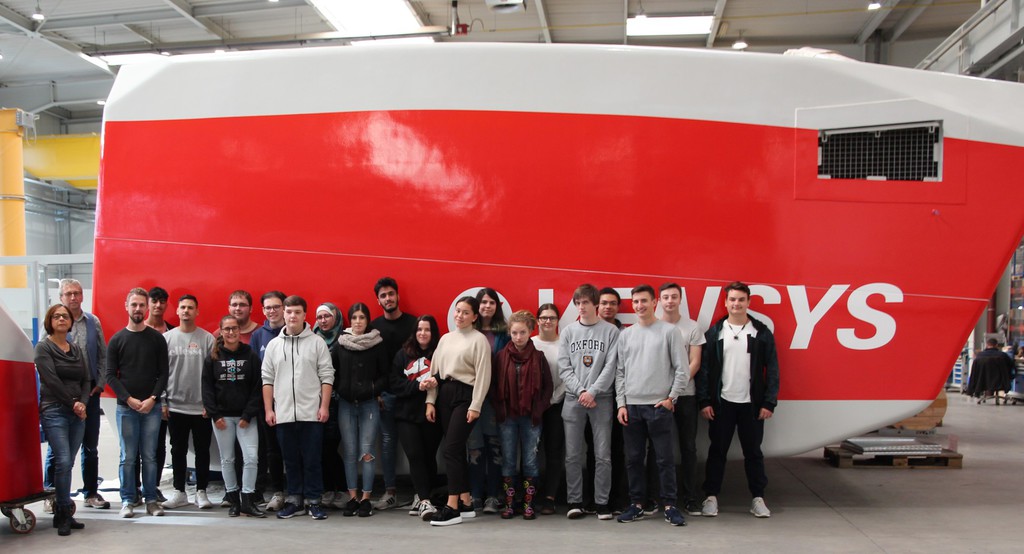 Der folgende Teil des Projekttages fand auf dem Gelände der VENSYS Energy AG statt, wo die Schülerinnen und Schüler von Herrn Elsen durch die Produktionshalle geführt und über die Produktion der Windenergieanlagen „Made in Neunkirchen“ informiert wurden. Dort hatten wir u.a. die Möglichkeit, allesamt in eine Maschinengondel zu steigen oder uns eine Vorstellung über die Stärke der verbauten Magneten im Stromgenerator zu verschaffen.