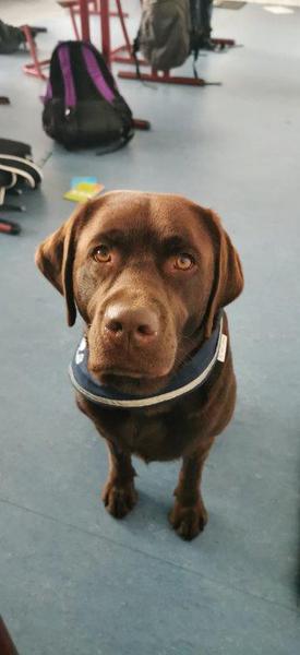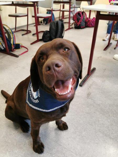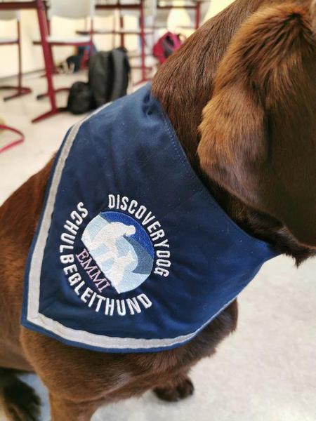 Den Schülerinnen und Schülern der Mühlbachschule in Schiffweiler ist die braune Hundedame aber schon länger bekannt. Im Alter von drei Monaten durfte sie ihre Hundeführerin Frau Backes zum ersten Mal in den Unterricht begleiten und Schulluft schnuppern. Inzwischen ist Emmi zur festen Größe im Schulalltag an der Mühlbachschule geworden und wird von allen freudig erwartet.